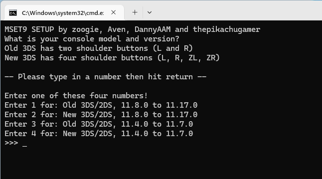 cdto the root of your SD card, then typepython3 mset9.pyand press Enter
