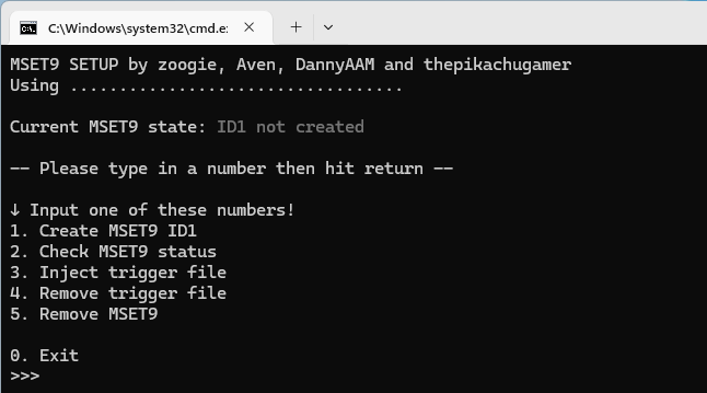 3, then press Enter to inject MSET9- You should see "MSET9 successfully injected!"