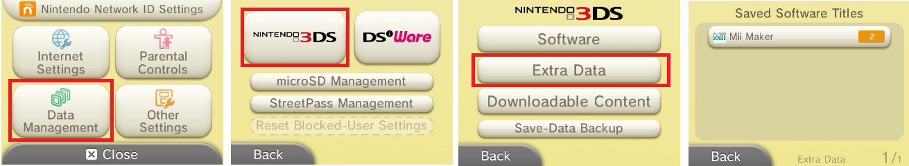 Data Management->Nintendo 3DS->Extra Data(image) - Do not press any buttons or touch the screen