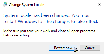Administrative, thenChange System LocaleINFO