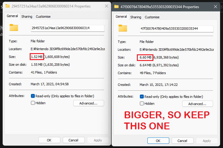 Now, put your SD card into your 3DS and turn it on. If your data is still there, you deleted the right folder and have now determined your correct ID1. If everything has disappeared, go back into the backup folder that you made earlier and try the other folder.